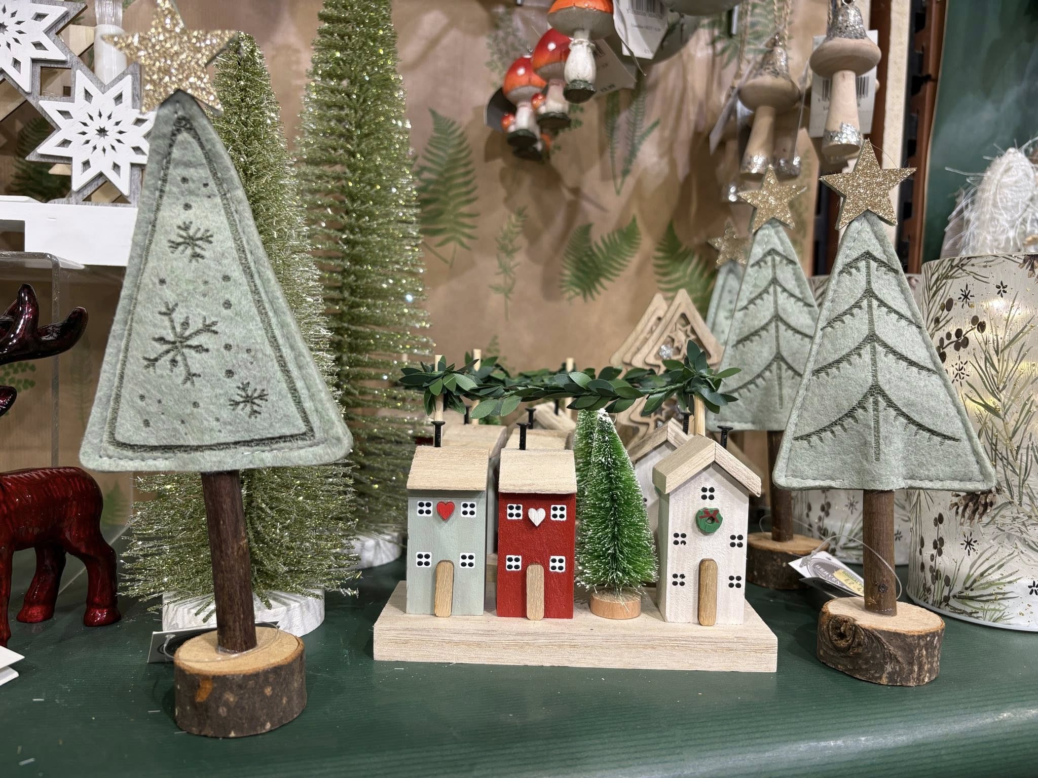From rustic to nostalgic, the traditional, the whimsical. Fluffy friends, latest trends, paper decs and funky specs. Something for everyone, we hope to delight, and come say hello to Santa up hanging the lights!